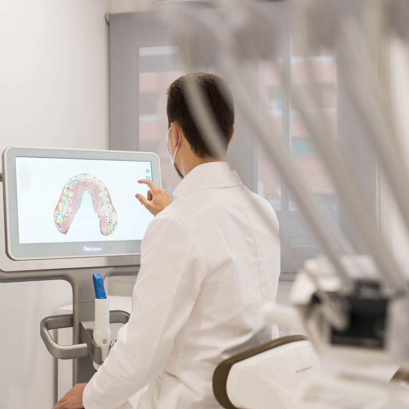 A través de la tecnología de captación 3D y los softwares de diseño de sonrisa, podremos tener una visión digital de los dientes y visualizar contigo en la pantalla los posibles resultados del tratamiento de ortodoncia invisible paso a paso.